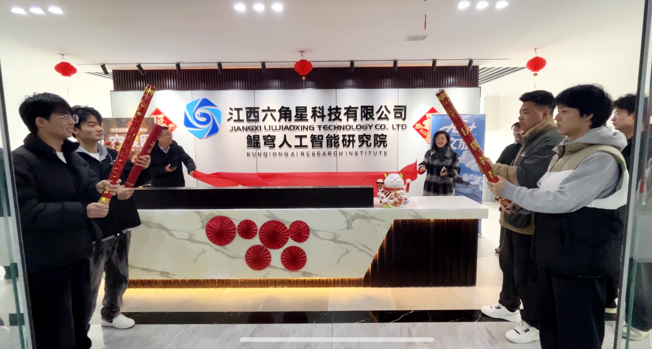 2025年12月31日上午10:00,在辞旧迎新之际,江西六角星科技有限公司隆重举行"鲲穹人工智能研究院"揭牌仪式。公司董事长付福前与总经理孙美华共同为研究院揭牌,在全体现员工的见证下,正式开启了研究院的发展新篇章。