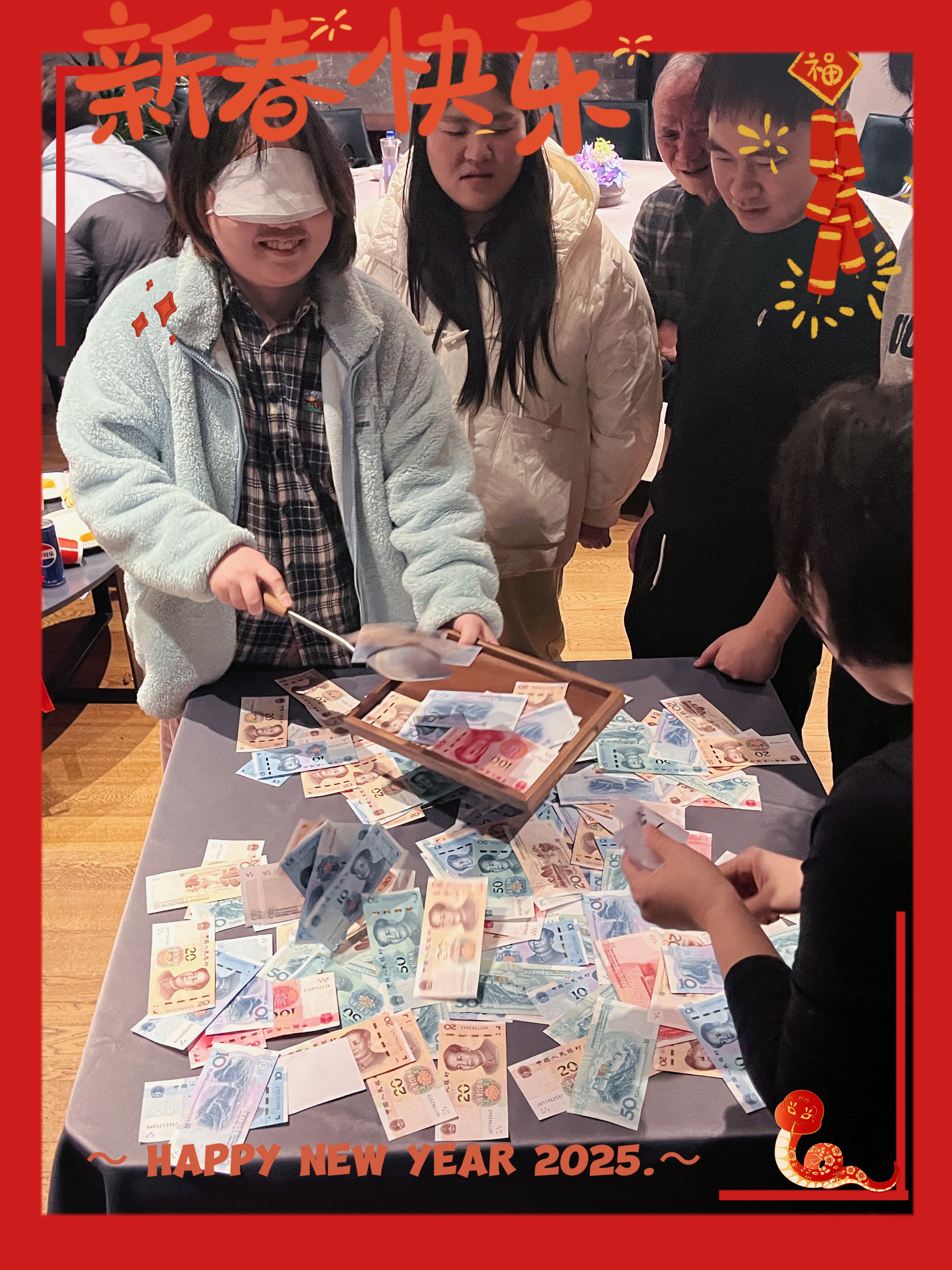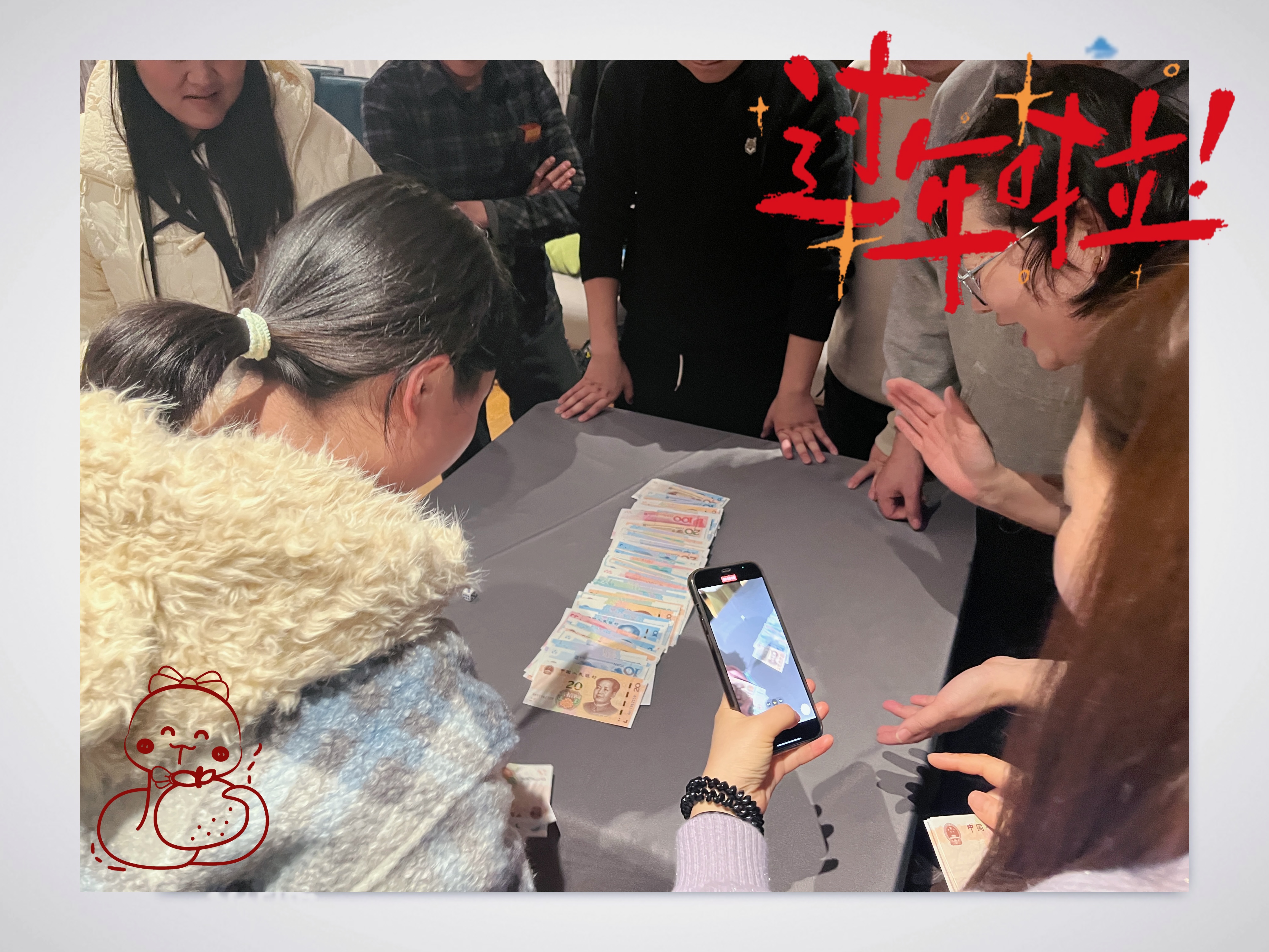 最后的铲钱游戏更是将欢乐推向了极致。我们设置了一个装满钱币的区域,参与者需要蒙上眼睛,手持锅铲进行铲取。铲到多少即为多少奖励,大家纷纷尝试,有的铲到了满满的奖金,有的则只铲到了零星几张纸币,但无论结果如何,大家都笑得合不拢嘴。✨🔥